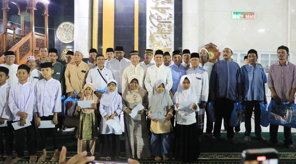 Menteri Dalam Negeri Muhammad Tito Karnavian turun langsung menyerahkan bantuan sekaligus berbuka puasa bersama ratusan anak yatim di Masjid Agung Islamic Center, Jumat (20/2/2026).