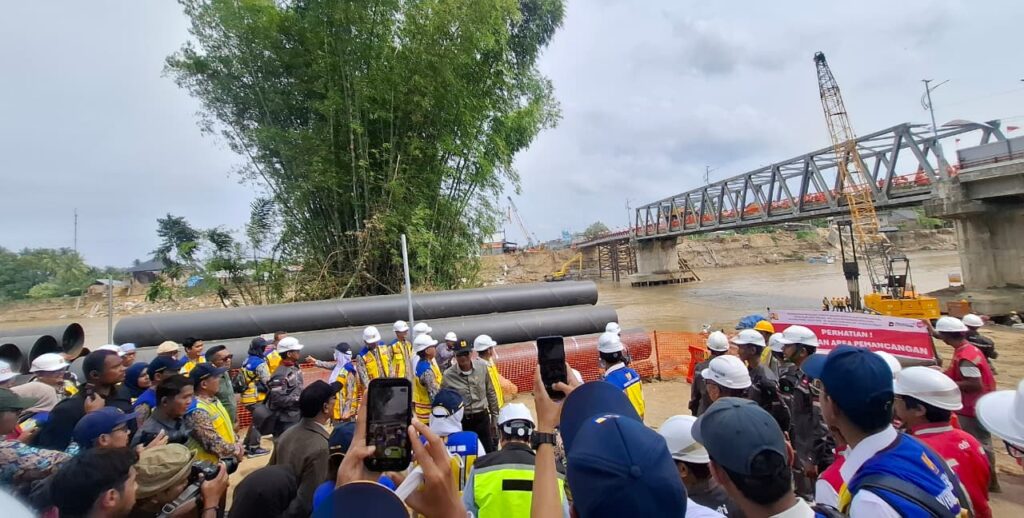 “Baik jembatan maupun jalan yang rusak itu semuanya diperbaiki dan dibangun kembali. Nantinya ada dua jembatan alternatif di sekitar lokasi ini. Insya Allah rampung dalam waktu tujuh bulan ke depan,” ujar Menteri Dody.