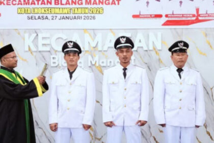 Habaterkini.com – Lhokseumawe, Camat Blang Mangat Achmad Faisal Daulay, S.IP, M.SI secara resmi melantik tiga Penjabat (Pj) Keuchik. Prosesi pelantikan berlangsung di Aula Kantor Kecamatan setem...