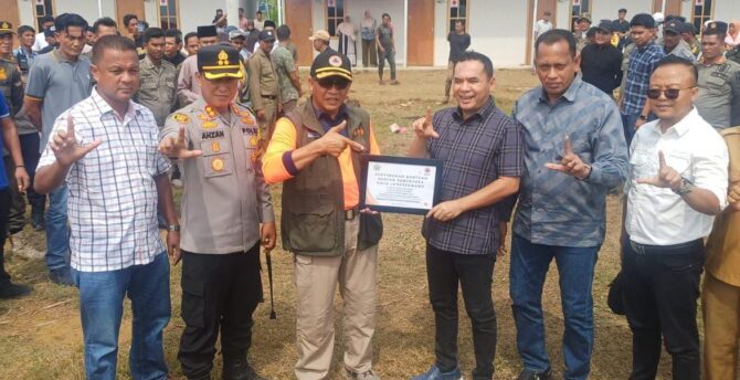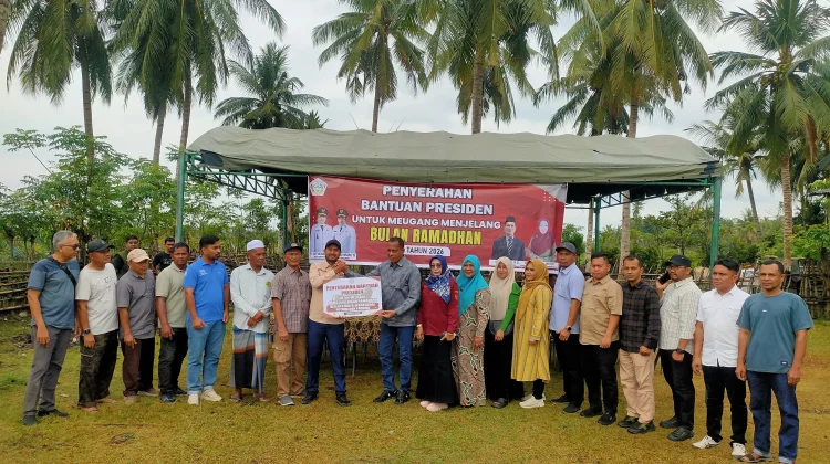 Habaterkini.com – Lhokseumawe, Wakil Wali Kota Lhokseumawe, Husaini menyerahkan bantuan lembu meugang dari Presiden Prabowo Subianto kepada masyarakat terdampak banjir di Gampong Teungoh, Kecamatan Blang Mangat, Senin 16 Februari 2026, Penyerahan bantuan tersebut berlangsung sederhana namun penuh antusias dari warga setempat.