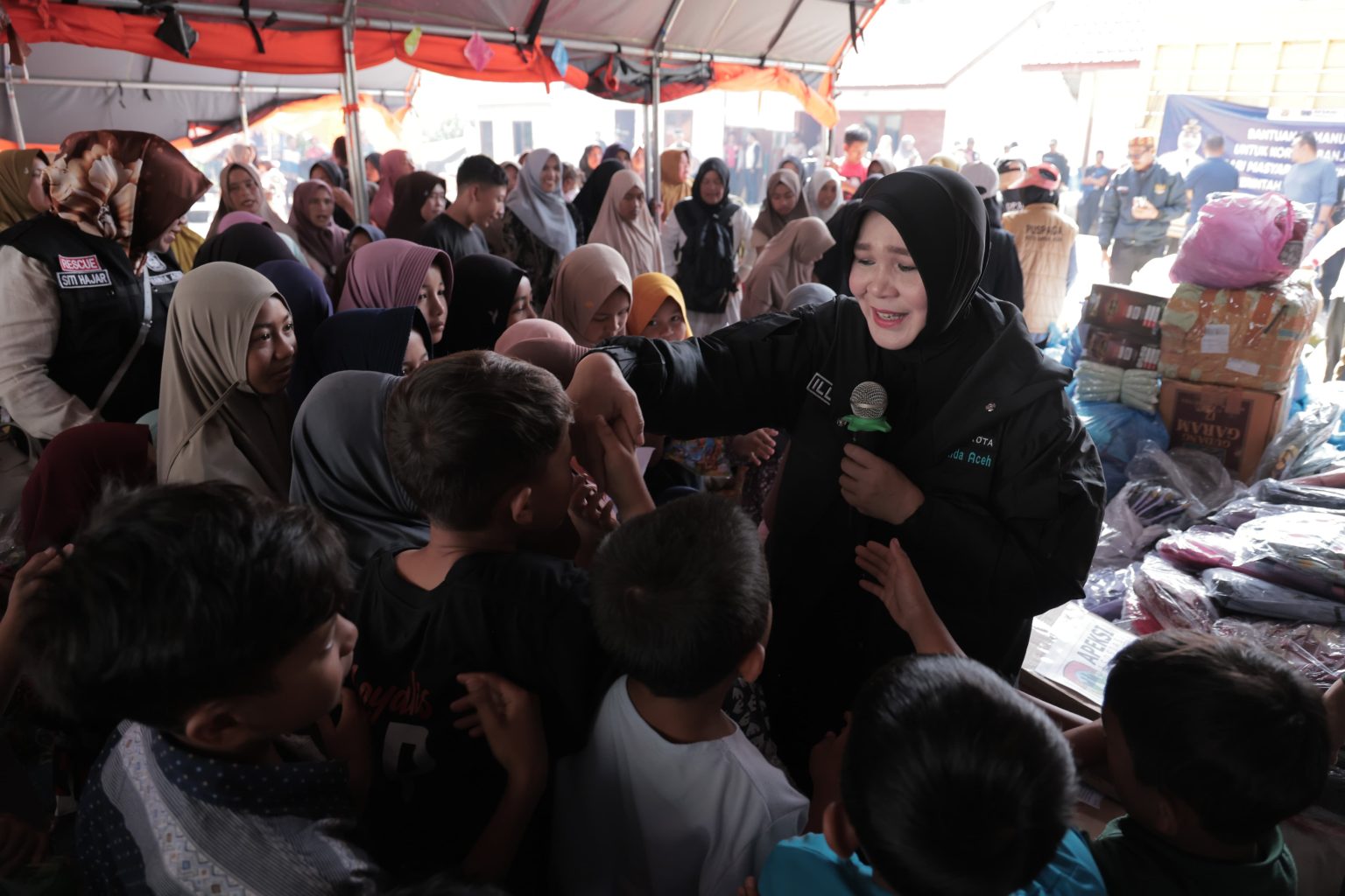 Di sela kegiatan, Illiza juga meluangkan waktu berinteraksi dengan masyarakat serta anak-anak pengungsi, sekaligus memastikan bantuan yang disalurkan tepat sasaran dan sesuai kebutuhan warga.